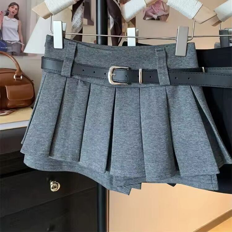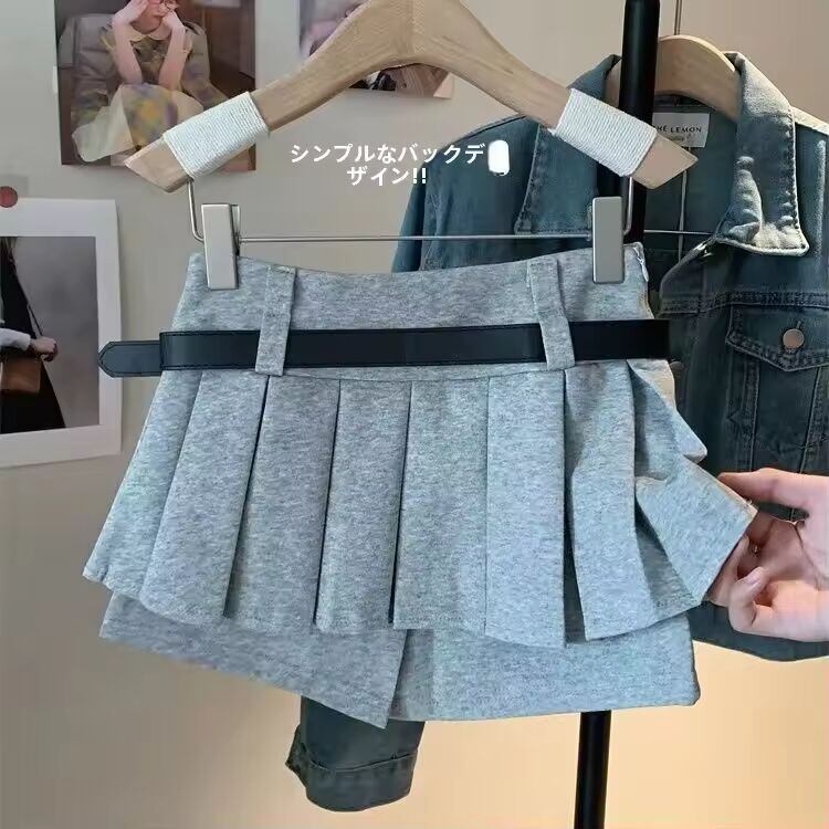 【送料無料】 ハイウエストプリーツミニスカート アメリカンスタイル露出防止ショートスカート 小柄な女の子向け トレンド コットン00% 秋冬