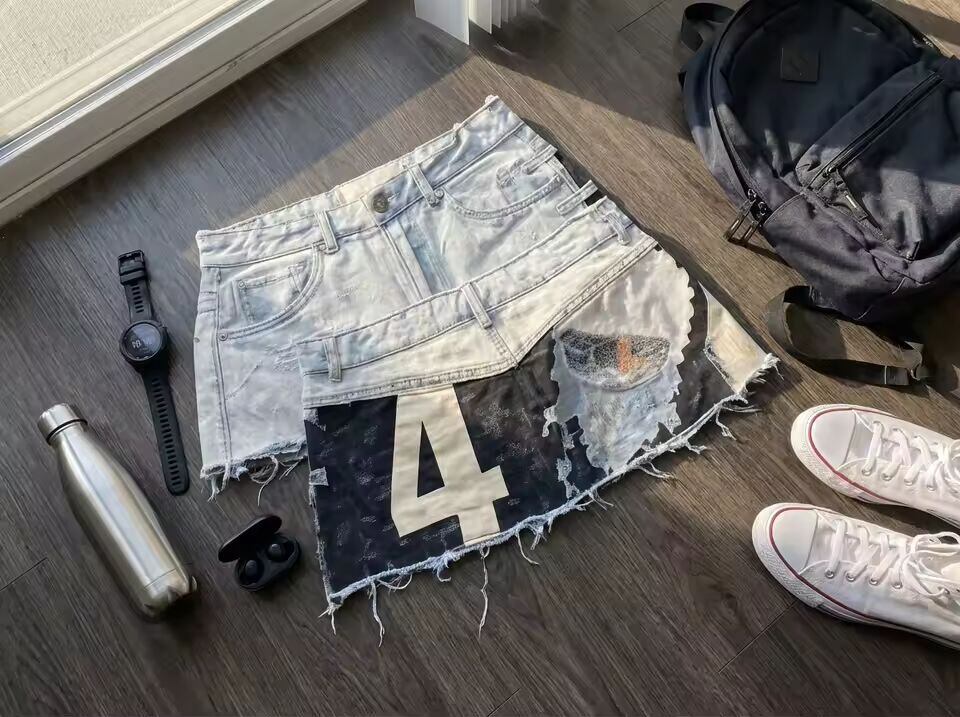 【送料無料】 レディースファッション ゴシック セクシー デニム ミニスカート Y2Kファッション ホットスイート デジタルメッシュ オーバーサイズ ショートパンツ ハイウエスト スリムフィット ミニスカート