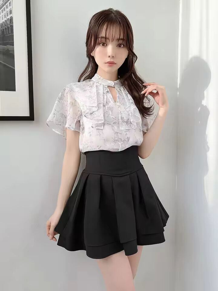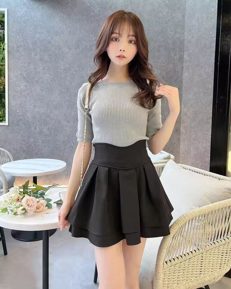 【送料無料】 手作りブラックアークウエストラインスリムショートスカートハイウエストポリエステル繊維日常使用Aラインスカート女子学生用