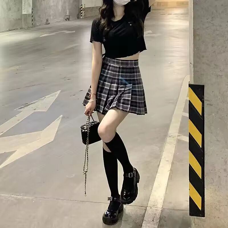 【送料無料】 チェック柄ハーフレングススカート女性の A ラインショートスカートハイウエストガールスカート Ropa Mujer ミニスカートの服