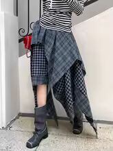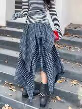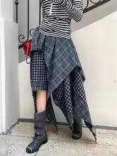 【送料無料】 Y2K ゴシックチェック柄ロングスカート女性ストリート原宿ハイウエスト不規則なスカートヴィンテージアメリカンヒップホップ春夏スカート