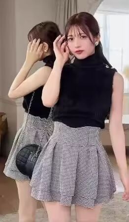【送料無料】 日本スカートフリルプリーツチェック柄スカート女性 2025 春の新弾性ハイウエスト痩身優しいミニスカートキュロット