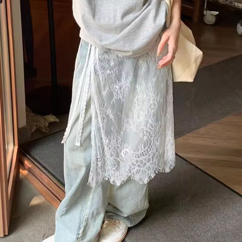 【送料無料】 ミディスカート女性レース巾着デザインエレガントな韓国スタイル春夏 A ラインハイウエスト不規則なサイドスリットファッションストリート