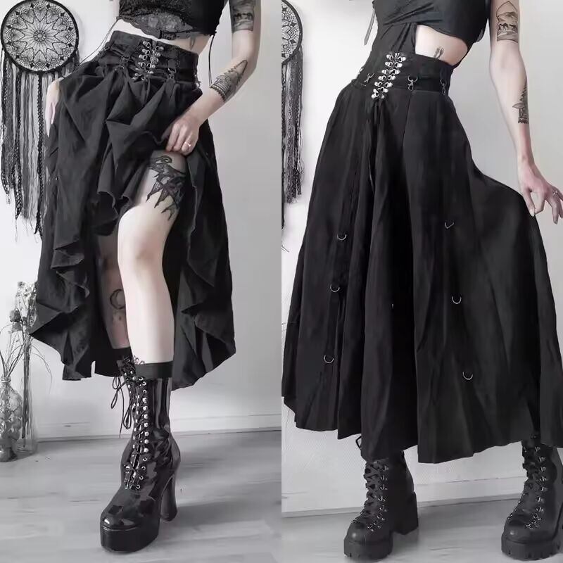 【送料無料】 女性のための不規則なレトロなスカート,アメリカンスタイル,セクシー,パンク,黒,ダークスタイル,新しいファッション,ストリートウェア,ホットガール,夏,秋,卸売