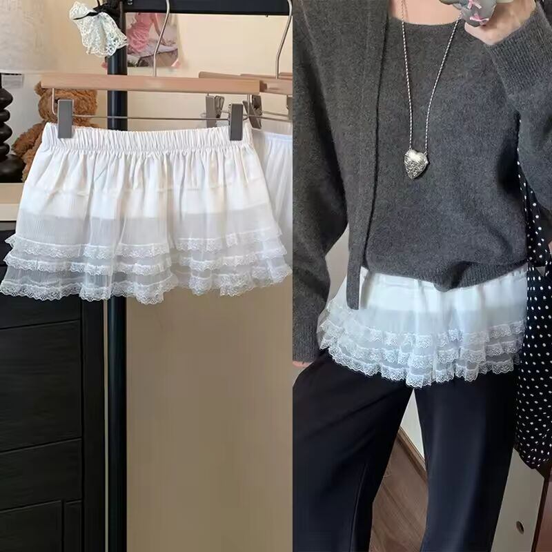 【送料無料】 女性 Y2K 韓国レースミニレイヤードスカートストリートレースアップフリル原宿ハイウエストプリーツ A ラインショートペチコートスカート服