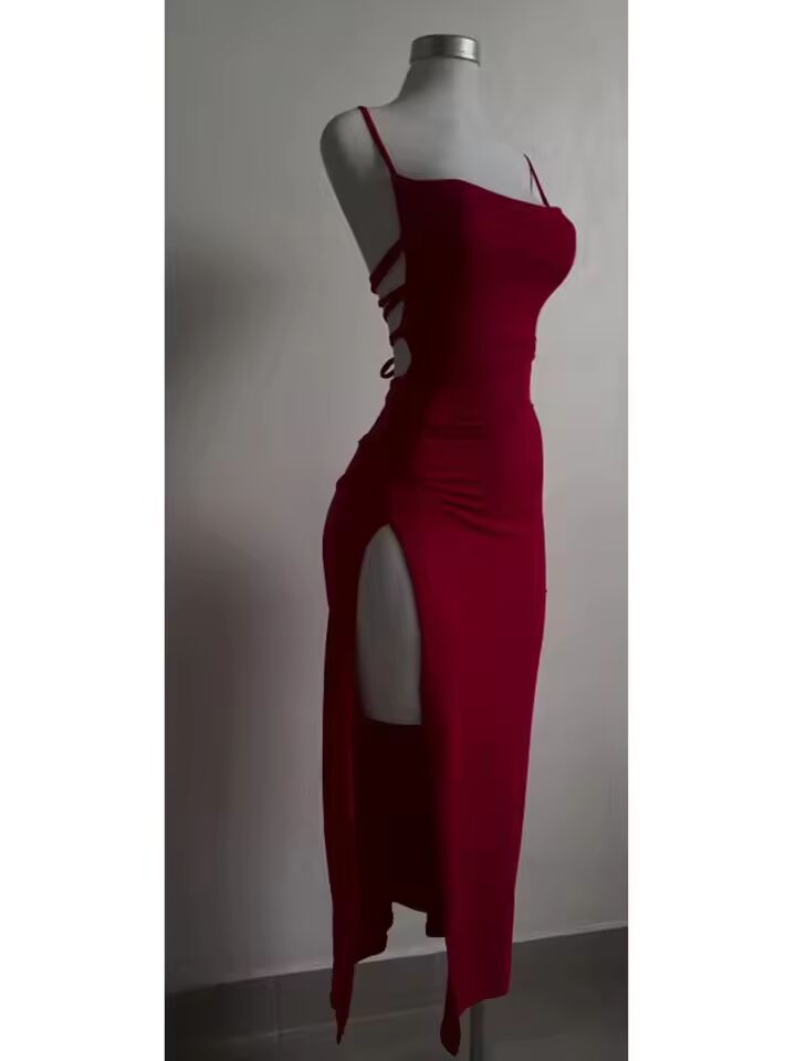 【送料無料】 女性用レースアップロングドレス,スリット,ノースリーブ,タイト,パーティー,クラブ,イブニングドレス,ハイストリート,女性用サスペンダードレス