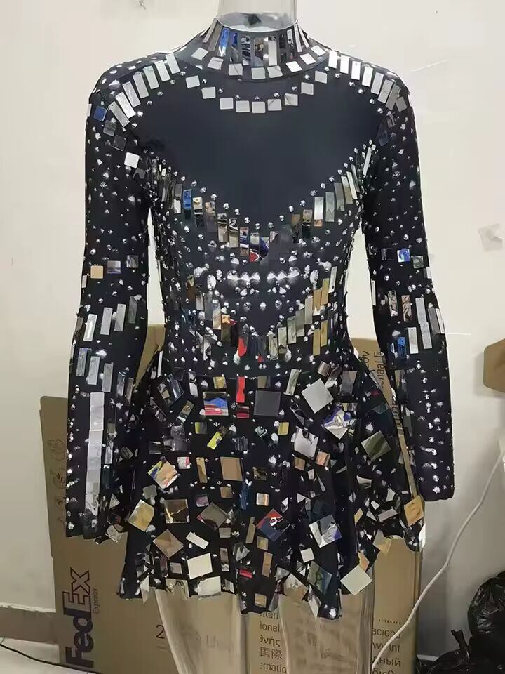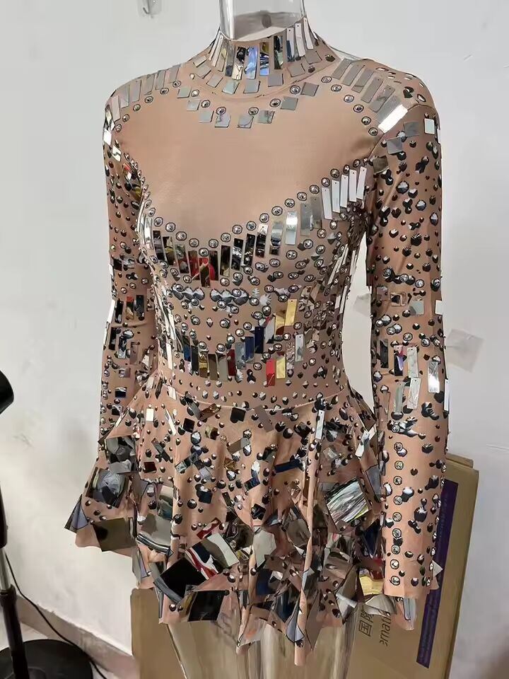 【送料無料】 女性のためのミラーパーティーイブニングドレス、長袖、ストレッチミニドレス、女性のお祝いドレス、ステージコスチューム、ベストセラー