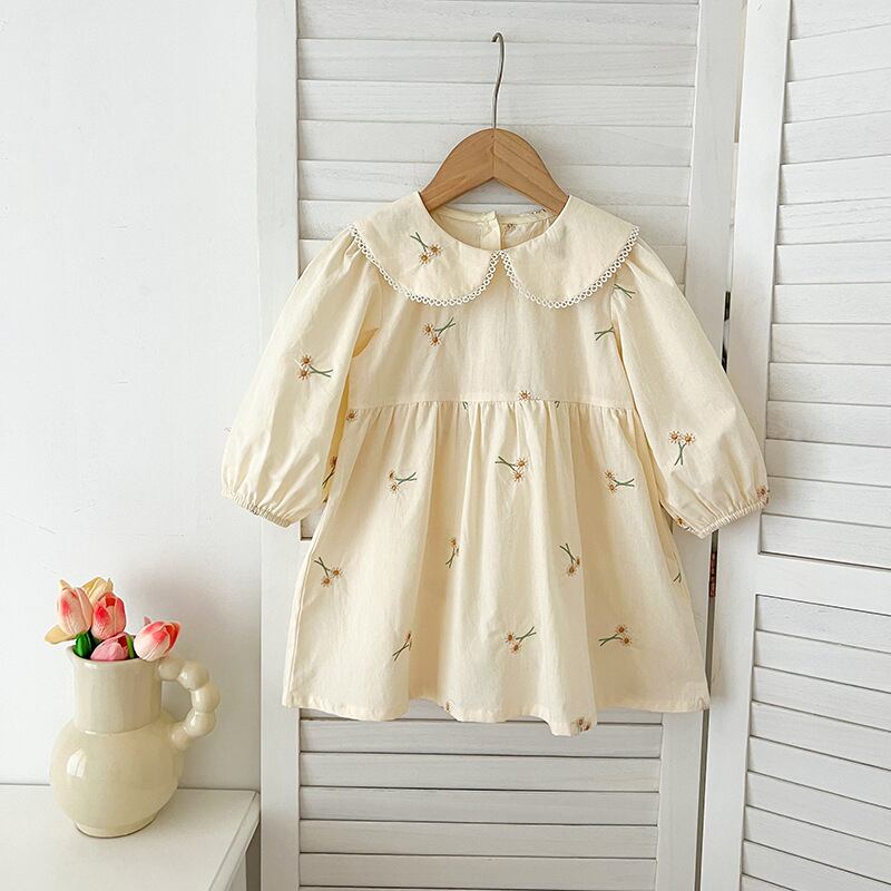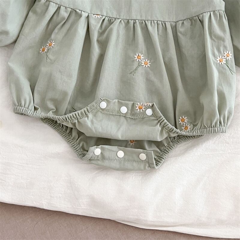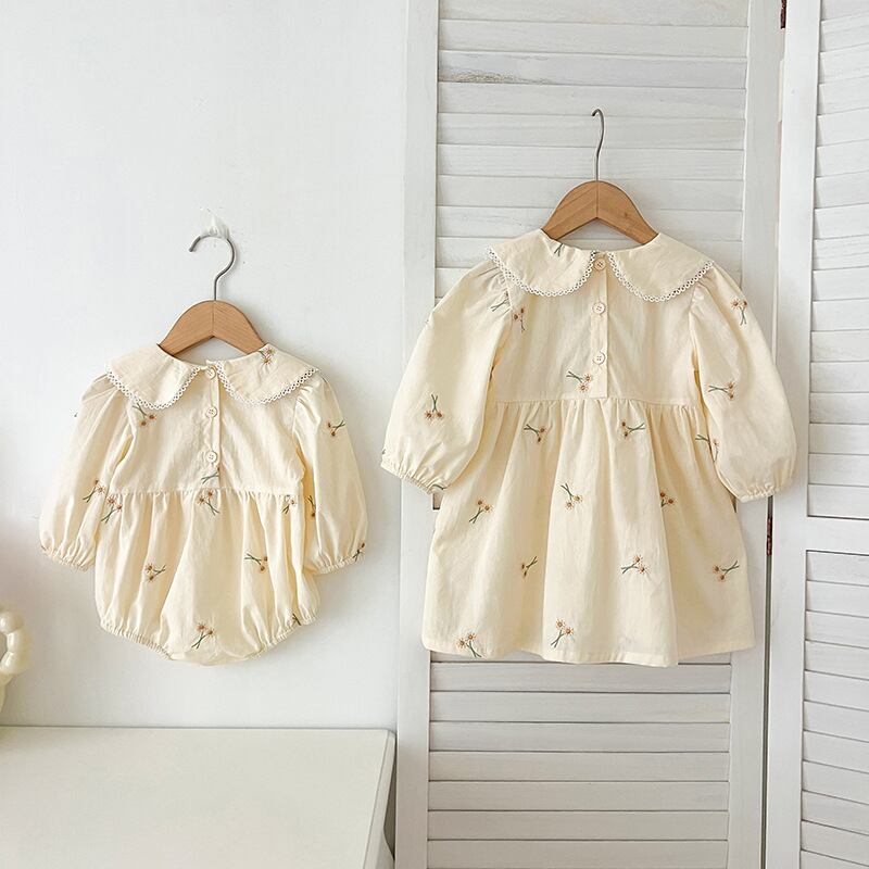 ins 春新作 子供服 姉妹お揃い 選べる2タイプ ピーターパンカラー 刺繍 ロンパース ワンピース