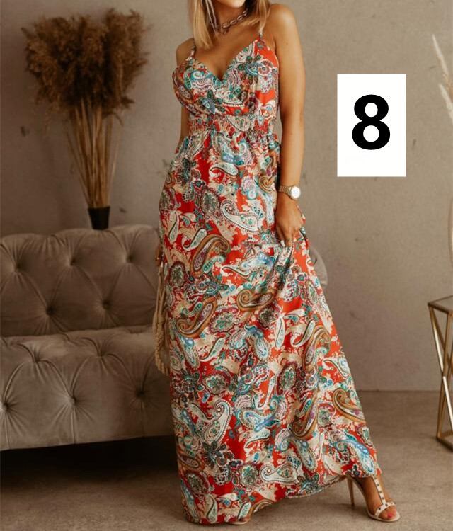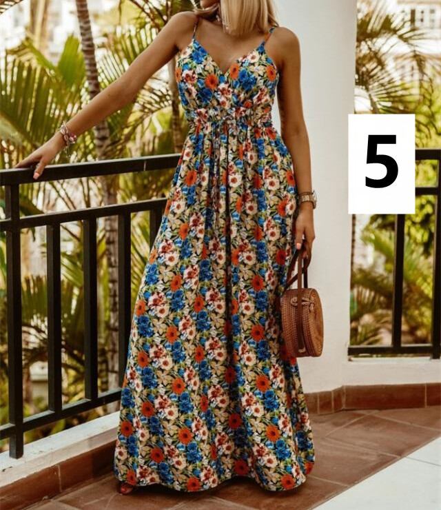 フェミニンで落ち着いた雰囲気があふれるマキシワンピース。デコルテを美しく魅せるすっきりとしたVネックラインが人気です。海などのリゾート地にもピッタリで、水着の上から着てもOK。