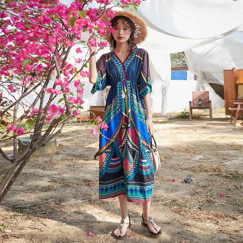 リゾート ワンピース ボヘミアン マキシワンピース ハワイ 海 大きいサイズ ロングワンピース ペイズリー