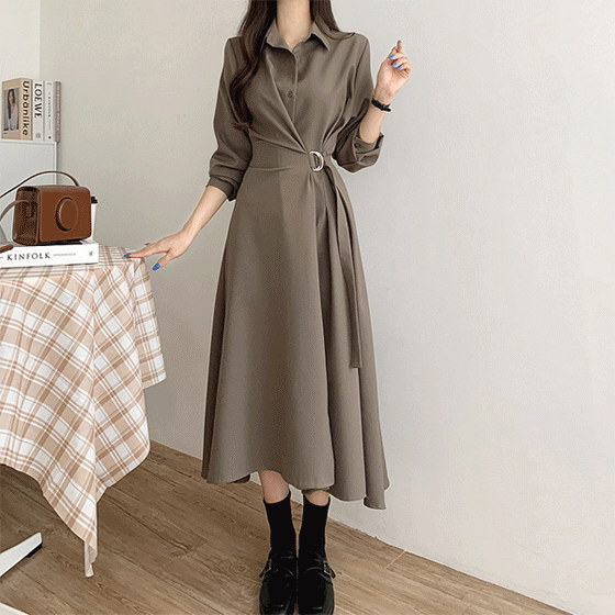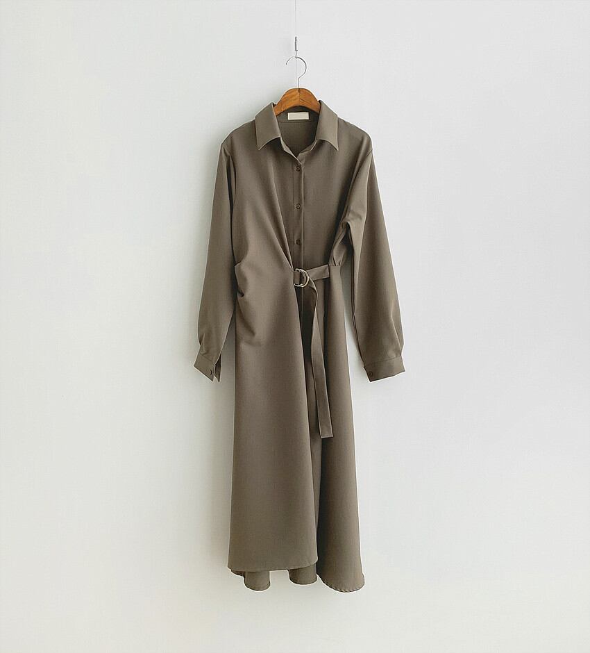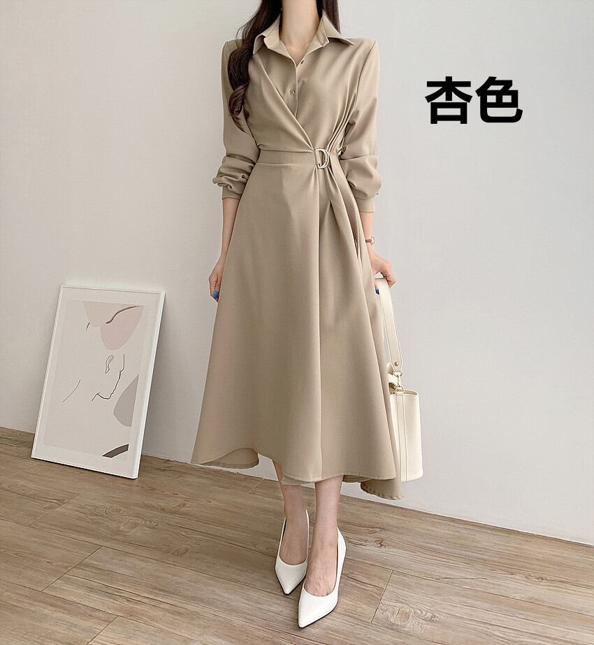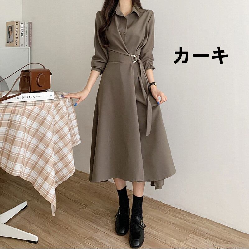 長袖 ワンピース 春新作ワンピース フレアワンピース シャツワンピース ブラック ハイウエスト ゆったり