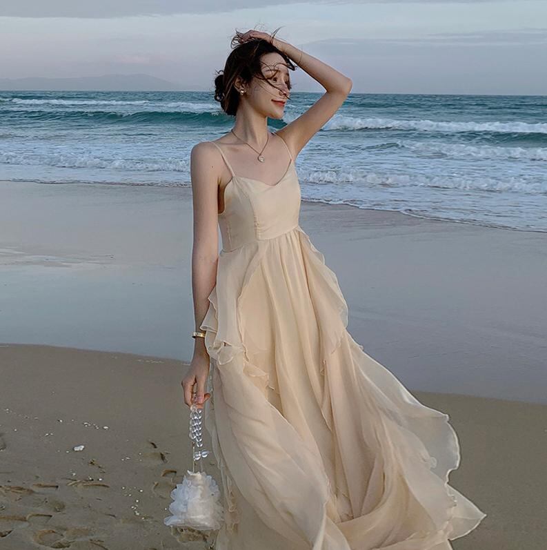マキシワンピース キャミワンピース ドレープ レディース シフォンワンピース リゾート サマードレス 無地
