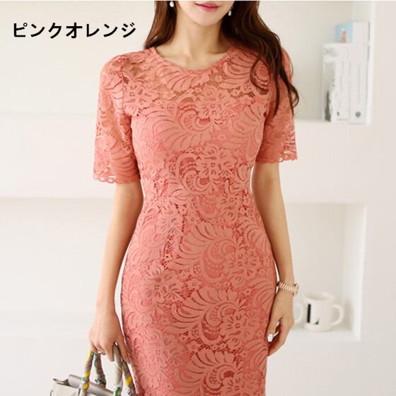 パーティードレス 黒 レースワンピース 半袖ドレス