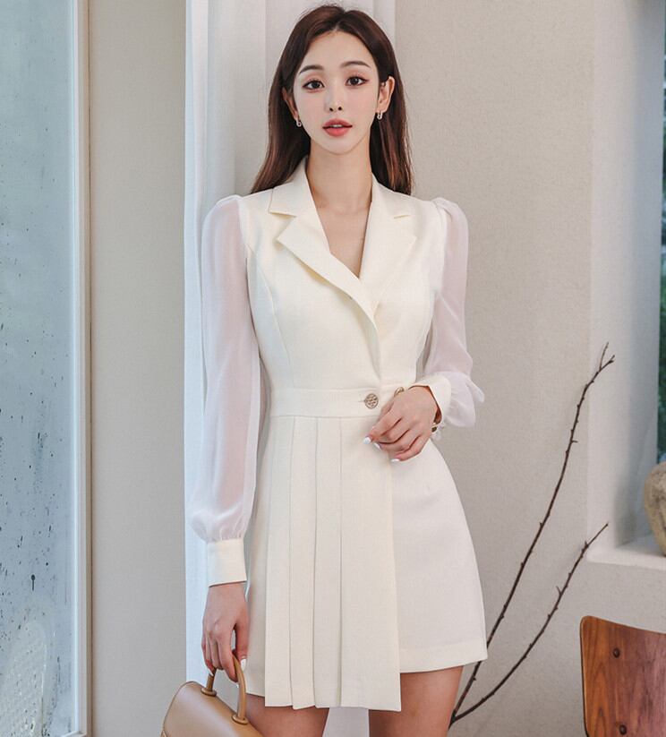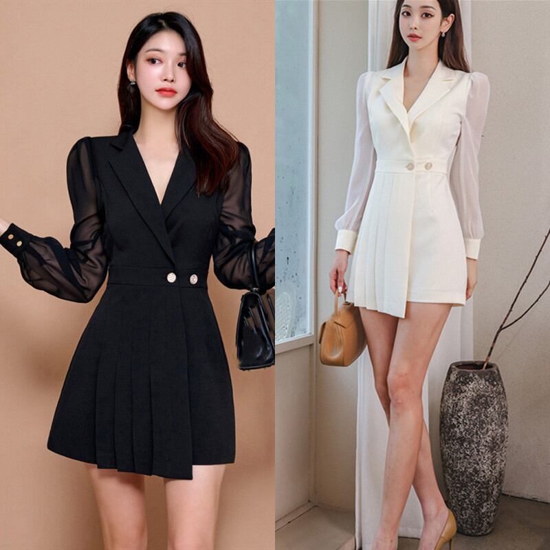 ワンピース 切替え ショートワンピース レディース スーツ 長袖ワンピース 洋服 ステンカラー ミニドレス