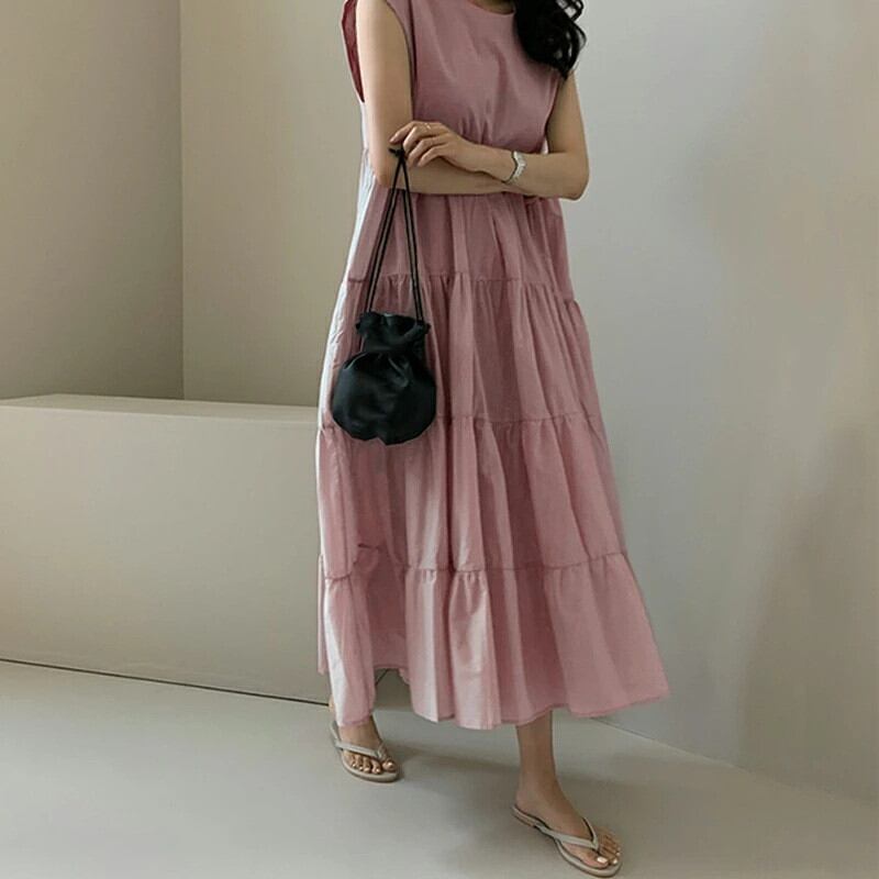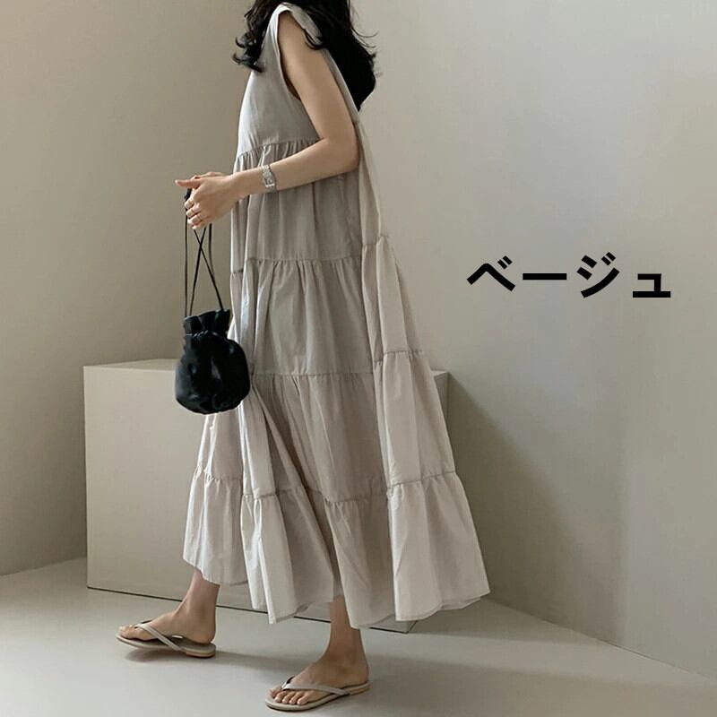 ワンピース レディース ロングワンピース ロング丈 マキシ丈 ノースリーブ ワンピ ラウンドネック 無地