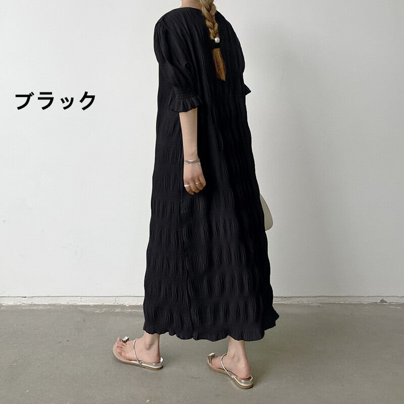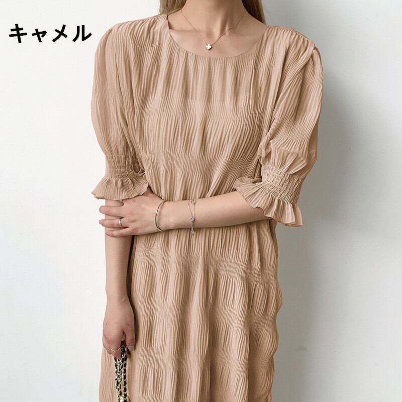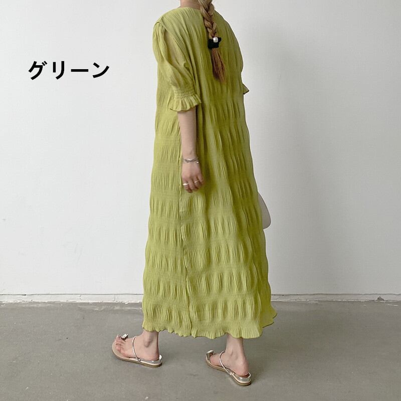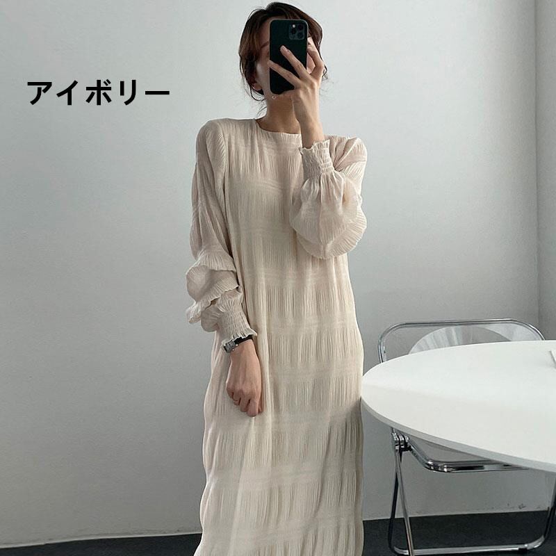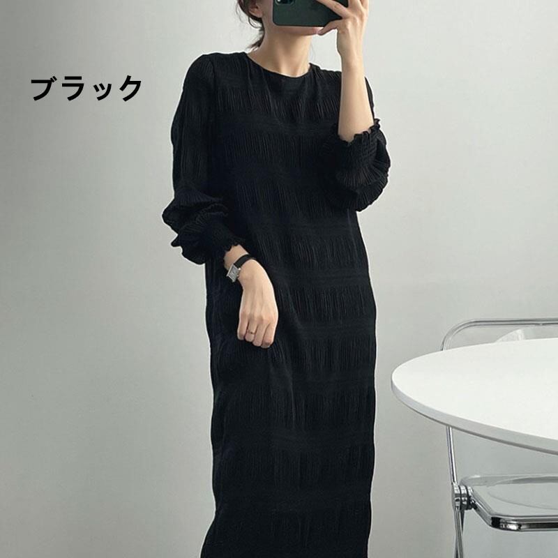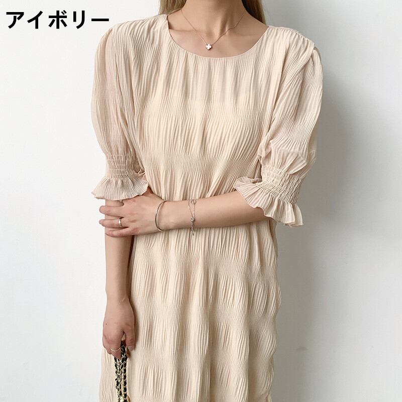 シャーリング シフォンワンピース ロング ワンピース 長袖 レディース 半袖 おすすめ おしゃれ ギャザー