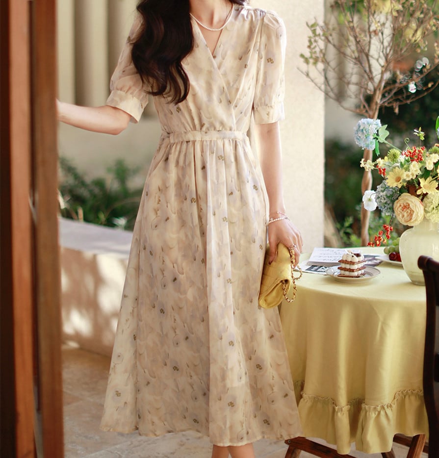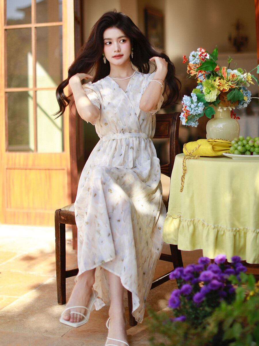 女性らしいエアリーなシルエットの華奢見えるシフォンワンピース。