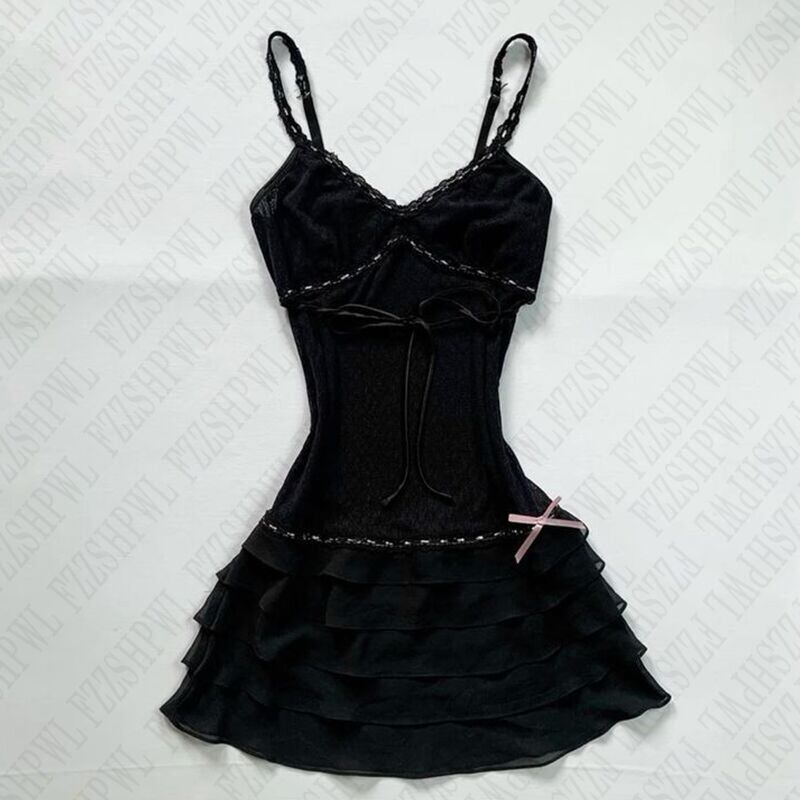 【送料無料】 グランジパンクゴシックフェアリーコアエモガールズドレスセクシーなスリムレースシックなファッション美的女性のドレス原宿レトロ Y2K ストリート