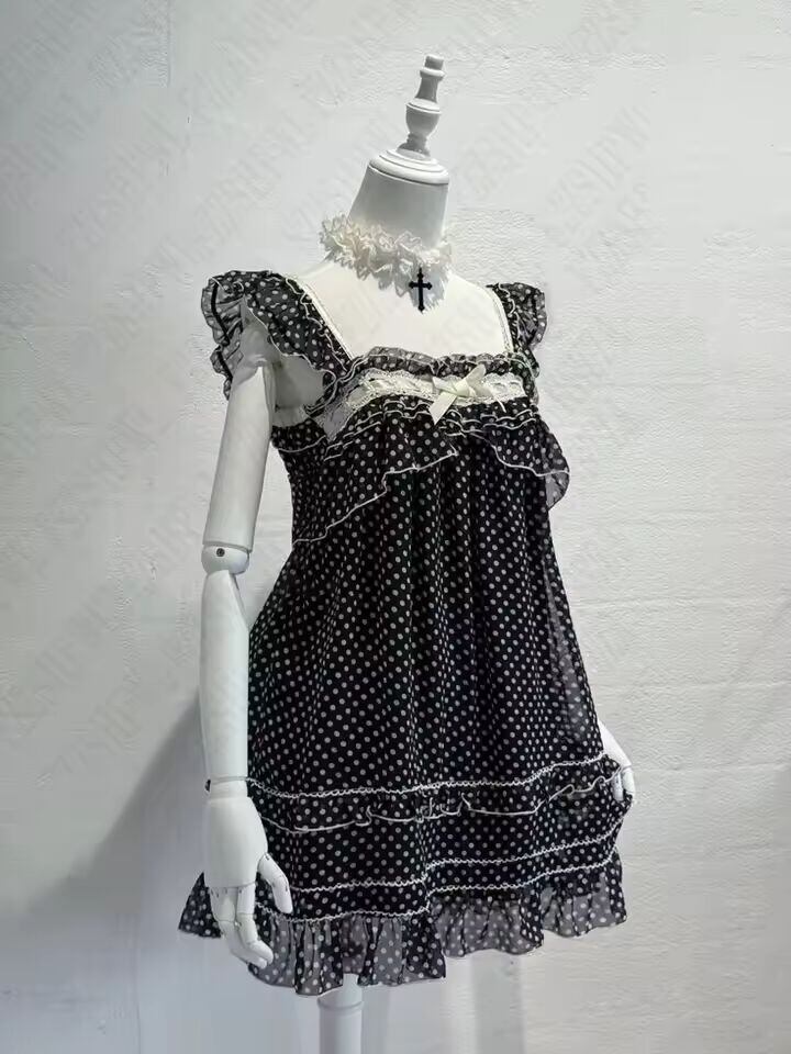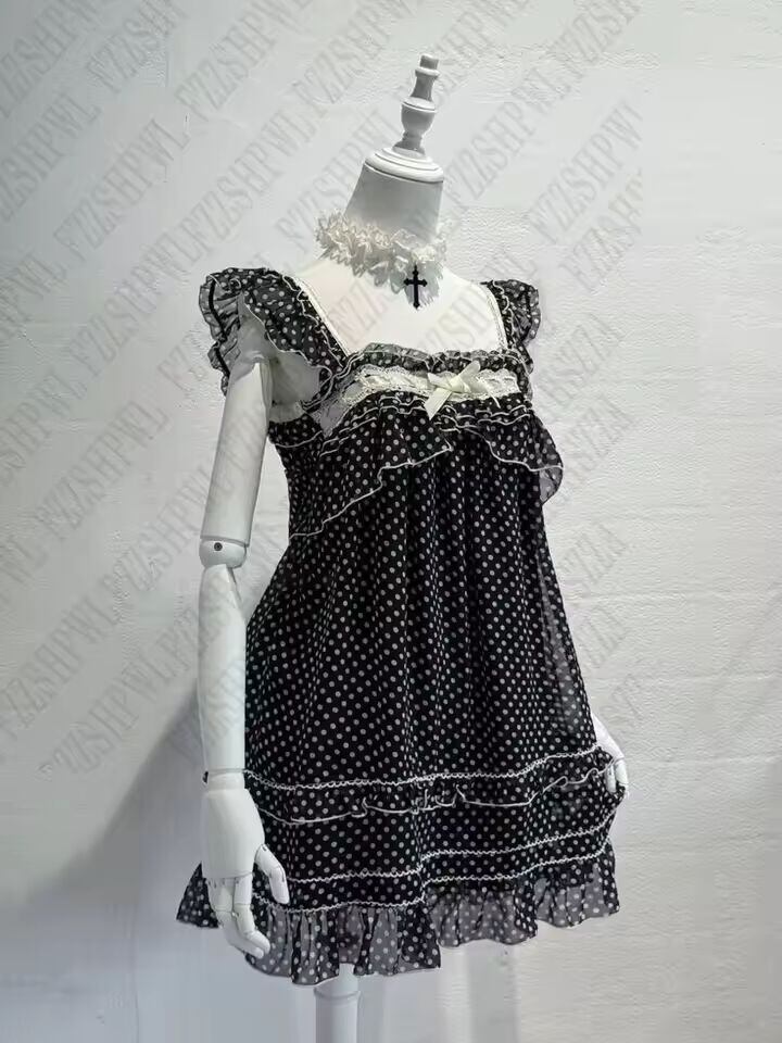 【送料無料】 かわいいポルカドット Y2K リボン付き女性のエレガントな服スリムで洗練されたクラシックファッションドレス夏の日常的な美的ノースリーブワンピース