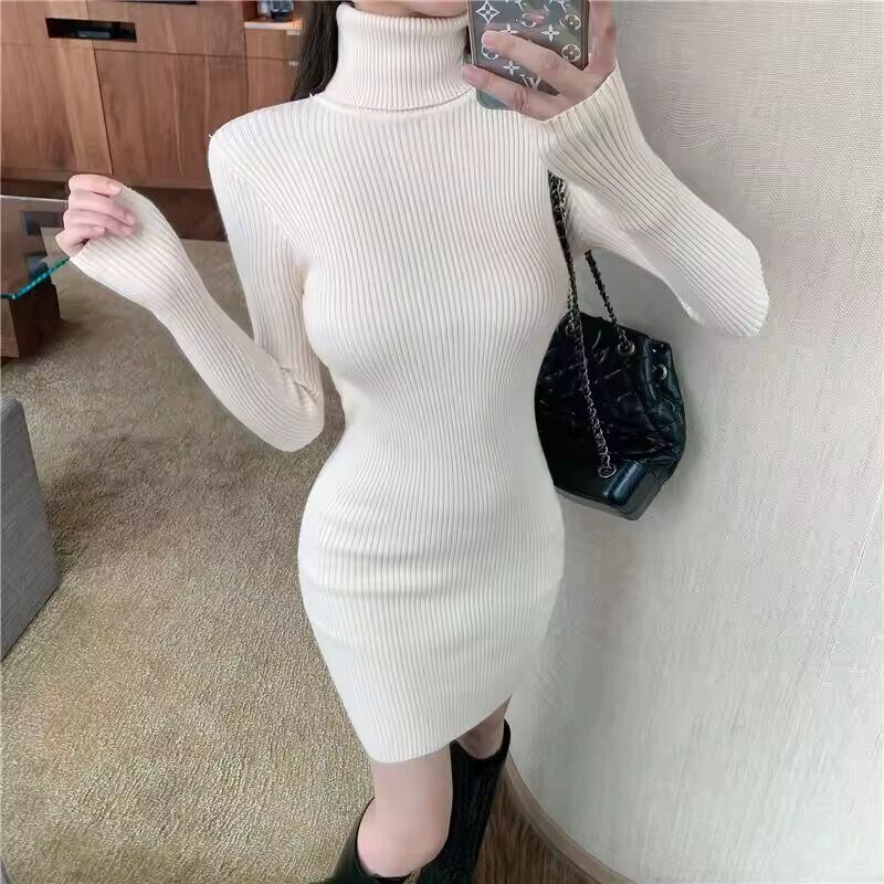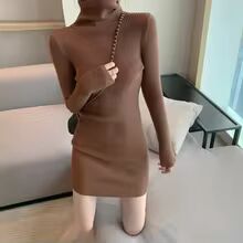 【送料無料】 女性秋冬タートルネック暖かいボディコンドレス長袖ニット固体オフィスプルオーバーセクシーなミニドレス女性のための 2025