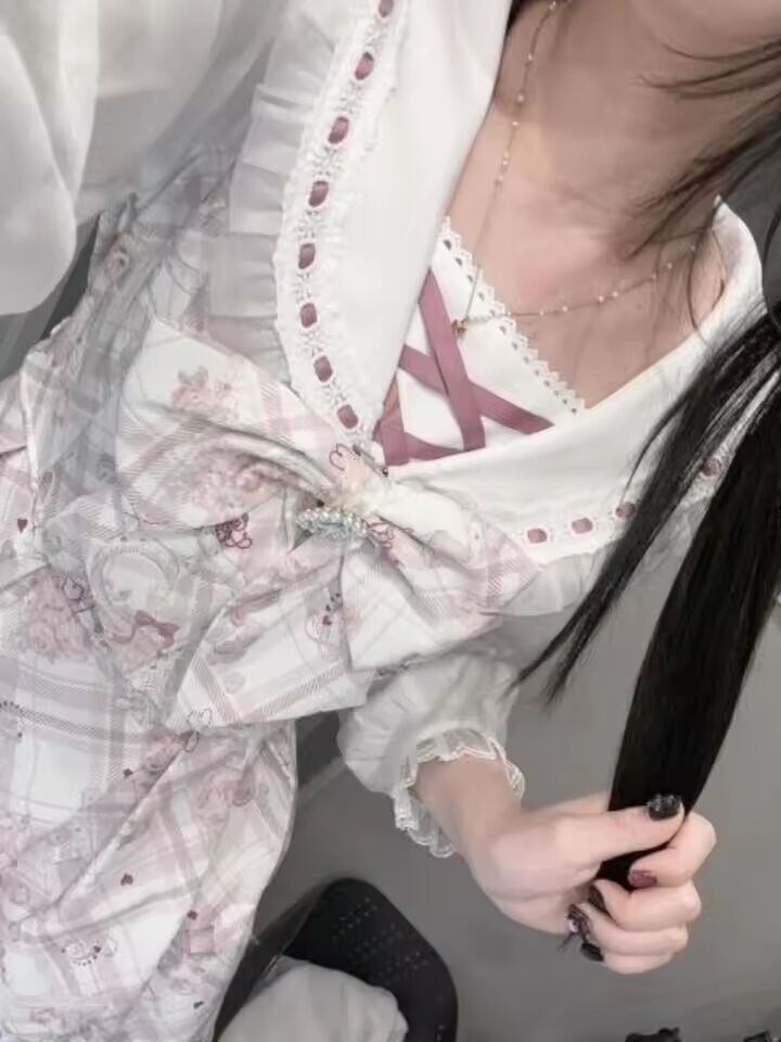 送料無料 和菓子印刷弓 Vestidos 偽二枚レースパッチワーク妖精ドレス 2025 春かわいいグランジ女性ヴィンテージドレス