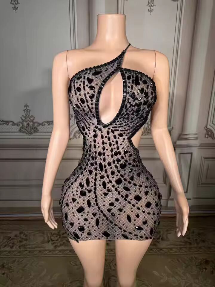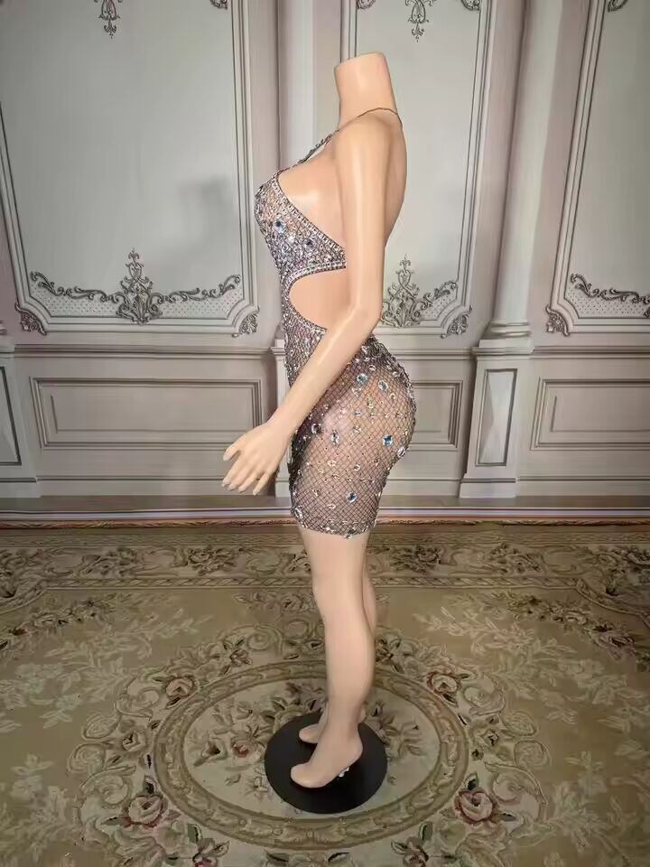 送料無料 ZD新作ラグジュアリーラインストーンパーティーミニドレス レディース セクシー ホロー ノースリーブ バックレス チェーン エレガント 誕生日 ナイトクラブ