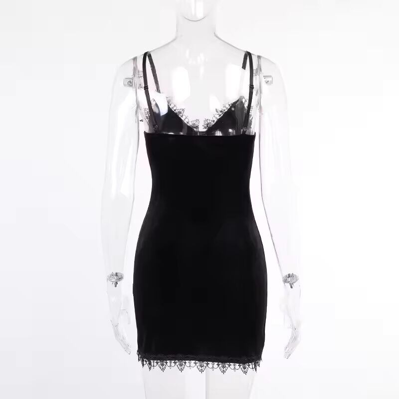 送料無料 ダーククロスブラックミニドレスヴィンテージセクシーなスパゲッティストラップハイウエストスリットドレスゴスパーティークラブ女性ドレス