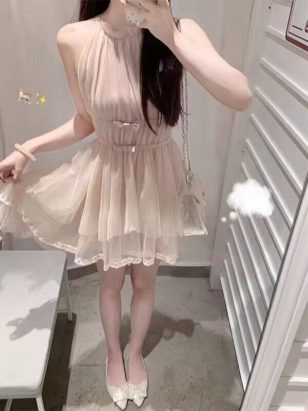 送料無料 海外発送 エレガントな蝶結びネックドレス レディース ショート丈 ウエストシェイプ セクシーなサマードレス 純粋な欲望スタイル 都市通勤に適しています
