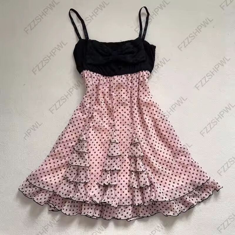 送料無料 海外発送 ストリートウェア原宿ポルカドットプリントY2KドレスファッションパンクブレーススカートスパイシーガールズロックゴスユニークロックパンクシックAラインスカート