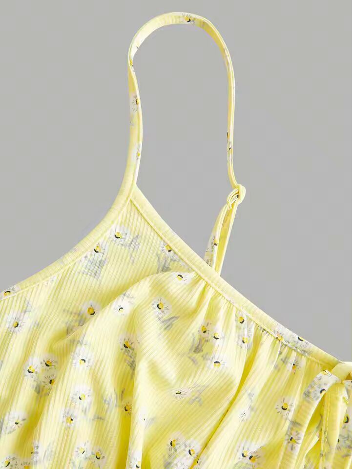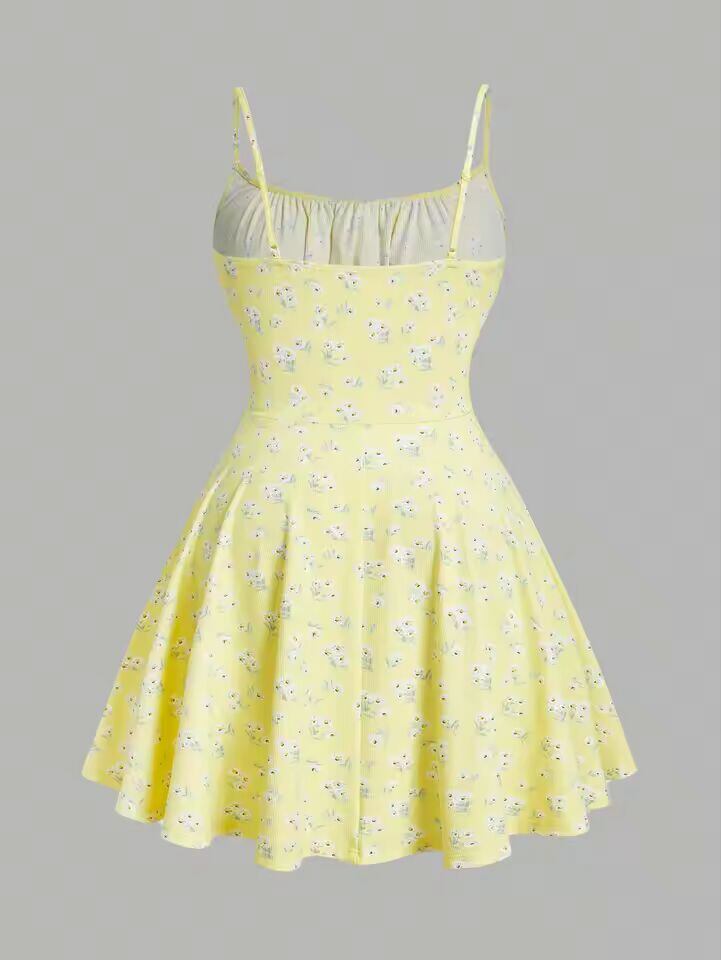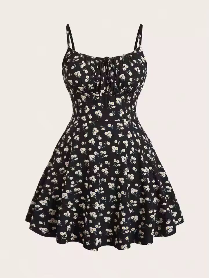 送料無料 海外発送 新しいファッション花柄エレガントなノースリーブ薄いストラップキャミソールドレス