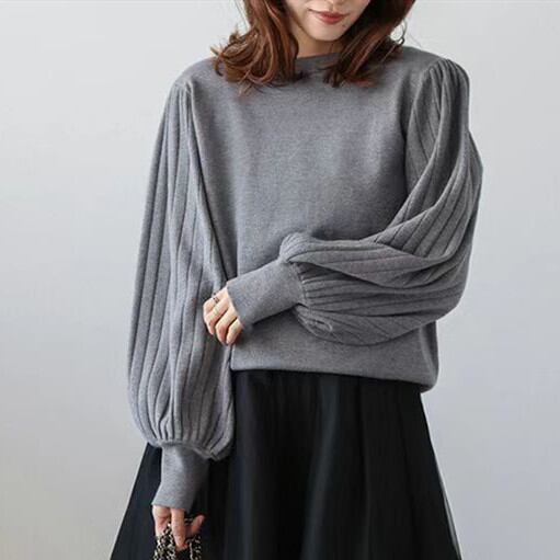 ニットトップス レディース ラウンドネック トップス ビッグシルエット ランタンスリープ 大人 可愛い