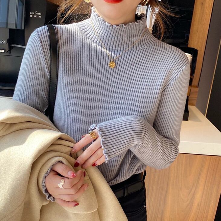 秋冬新作 裏起毛 セーター トップス レディース ニット 長袖 プルオーバー インナー 着回し きれいめ