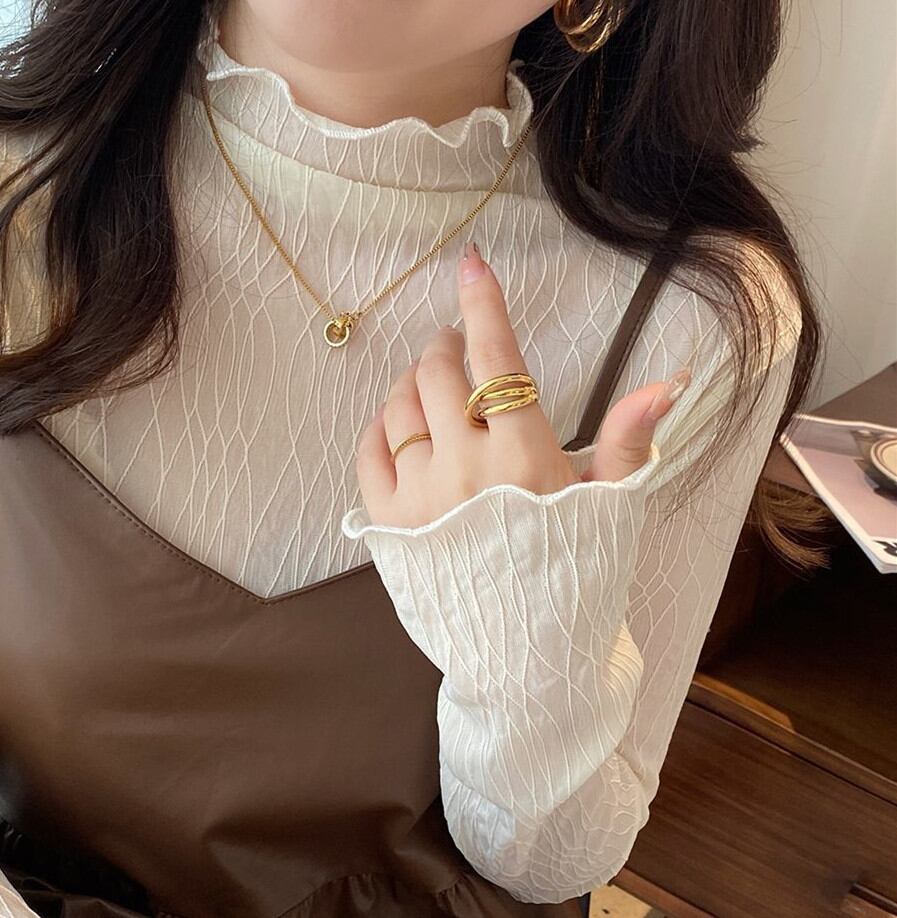 2026年春新作 インナー シースルートップス メロウフリルブラウス ハイネック トップス レディース