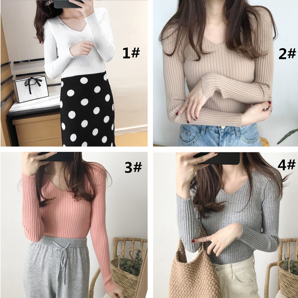 ニットトップス レディース 秋 冬 秋冬 チュニック トップス Vネック リブニット 長袖ニット セーター