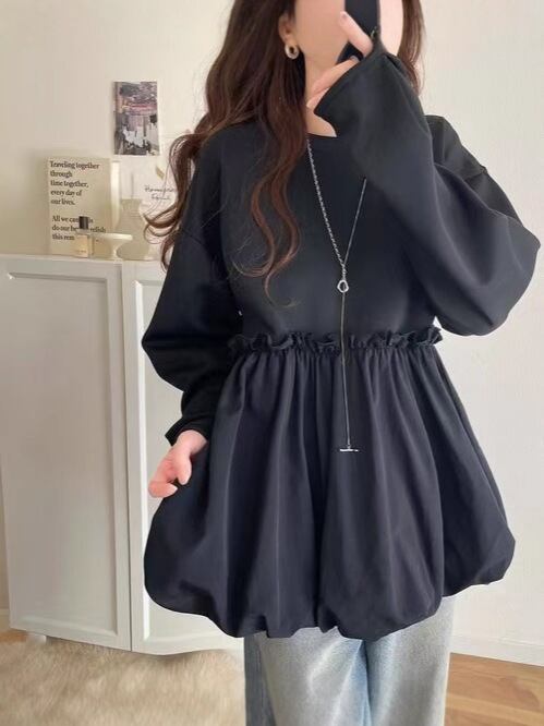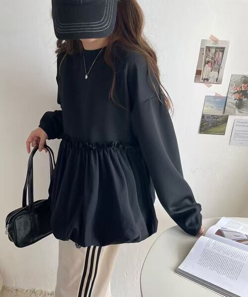 プルオーバー トレーナー レディース 長袖 異素材 切り替え トップス 秋 冬 スウェット ラウンドネック