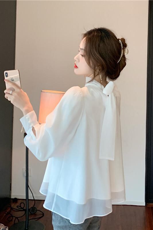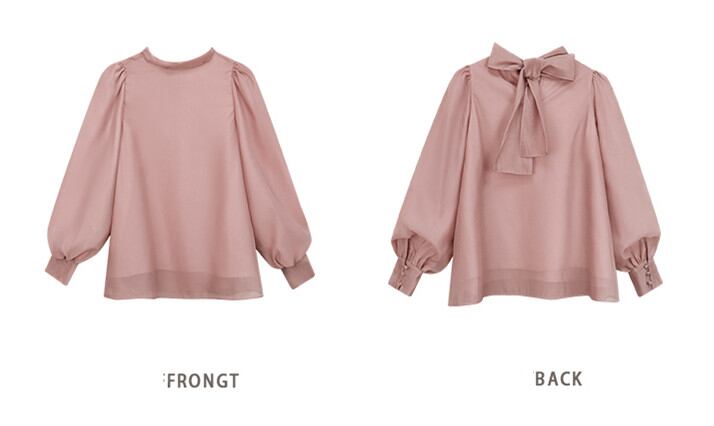 ◎【送料無料】2026春夏新作 ブラウス シフォンシャツ レディーストップス 背面リボン 韓国風 長袖シャツ オシャレ 2色