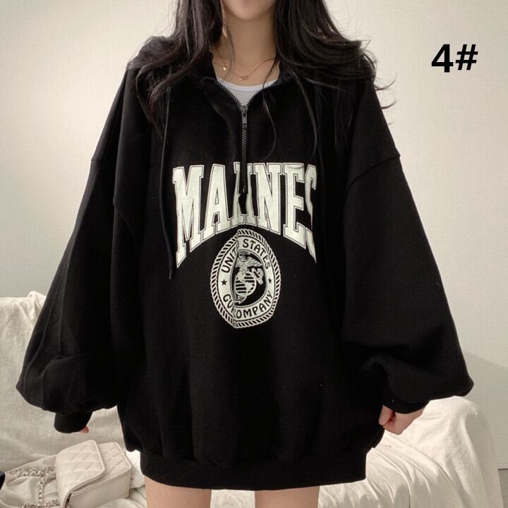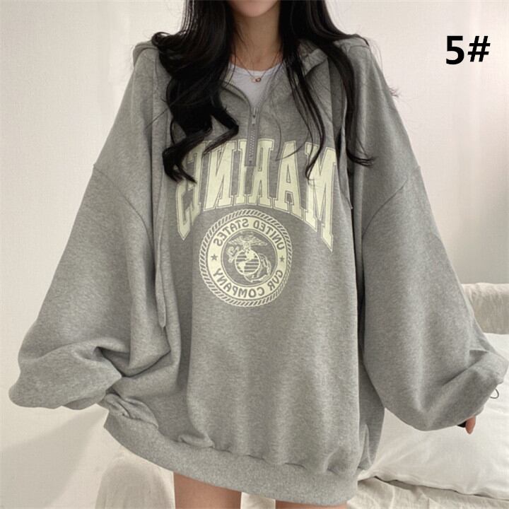 ◎【送料無料】秋冬服 レディース パーカー プルオーバー トップス フード付き カジュアル ビッグシルエット 英字ロゴ