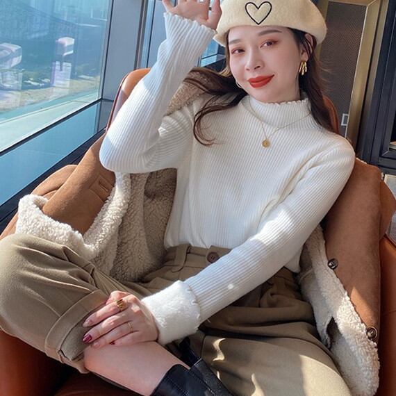 ◎【送料無料】秋冬新作 裏起毛 セーター トップス レディース ニット 長袖 プルオーバー インナー 着回し きれいめ