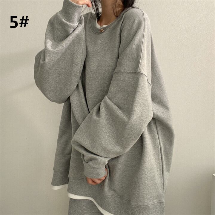 ◎【送料無料】プルオーバー パーカー 秋冬服 レディーストップス ラウンドネック カジュアル ビッグシルエット