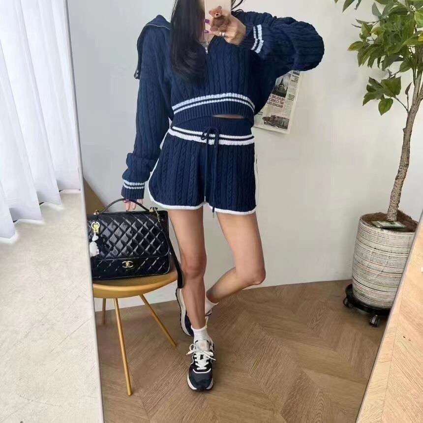 ◎【送料無料】秋冬新作 ニットトップス パーカー レディース プルオーバー トップス ニットパンツ ショットパンツ