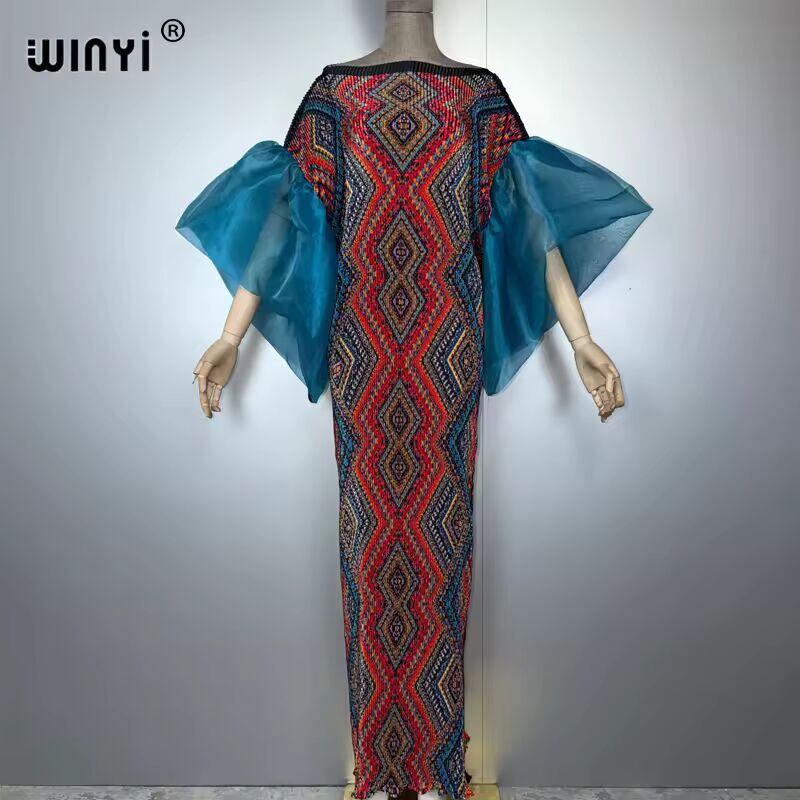 【送料無料◎】 WINYI バブルスリーブプリーツドレス ビーチカバーアップ ボヘミアンカフタン アバヤ ドバイ ラグジュアリーパーティードレス ロング丈 ムスリム女性用イブニングドレス