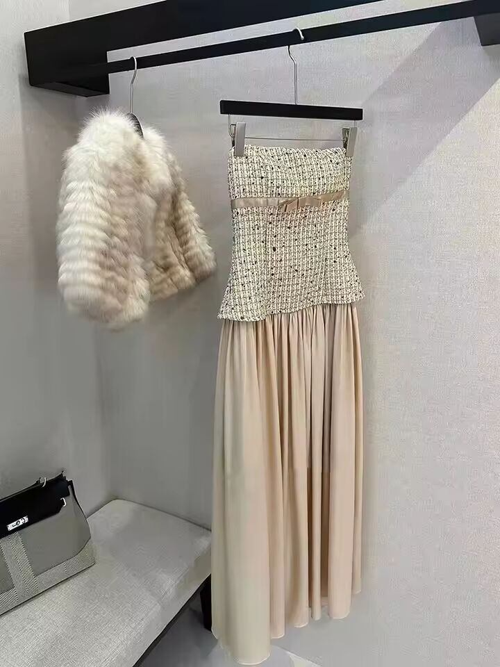 【送料無料◎】 春の高級パッチワークドレス女性韓国エレガントサテンスプライシングストラップレスドレス Y2K パーティーナイト胸巻き Vestidos 新しい