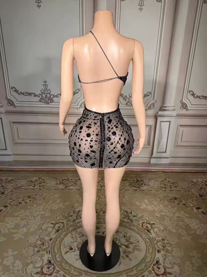 【送料無料◎】 ZD新作ラグジュアリーラインストーンパーティーミニドレス レディース セクシー ホロー ノースリーブ バックレス チェーン エレガント 誕生日 ナイトクラブ