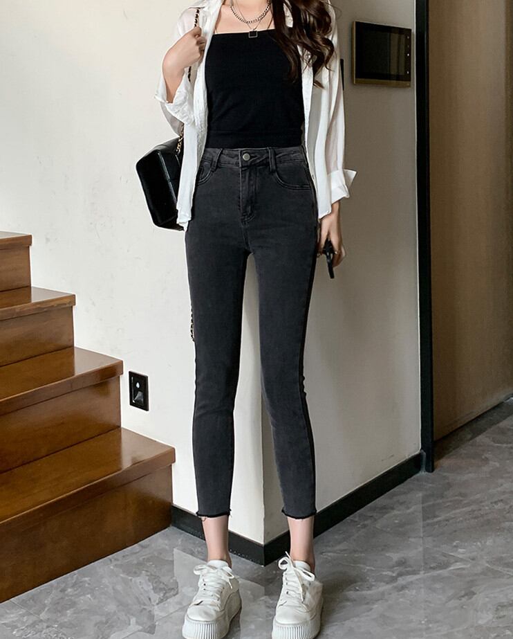 ◎【送料無料】スキニーパンツ レディース デニム パンツ ストレッチ ボトムス ハイウエスト 美脚 脚長 カジュアル 大人