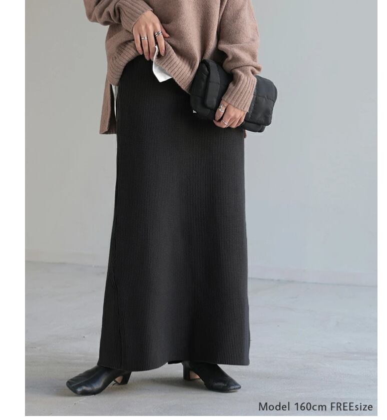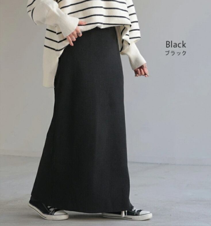 ◎【送料無料】スカート レディース ボトムス ロング丈スカート ニットスカート ウエストゴム 体型カバー 秋冬 きれいめ