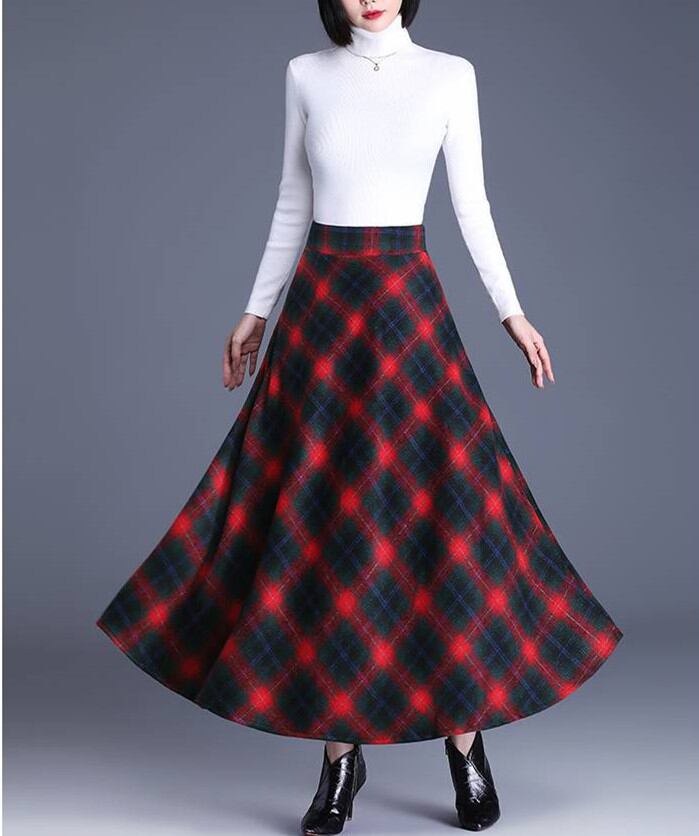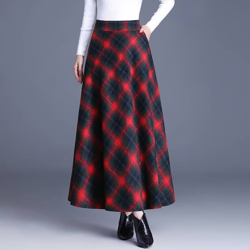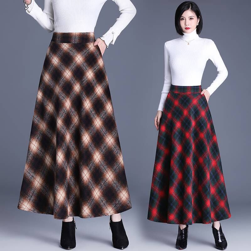 ◎【送料無料】スカート フレアスカート ボトムス ロング丈スカート 秋冬新作 チェック柄 きれいめ 大人
