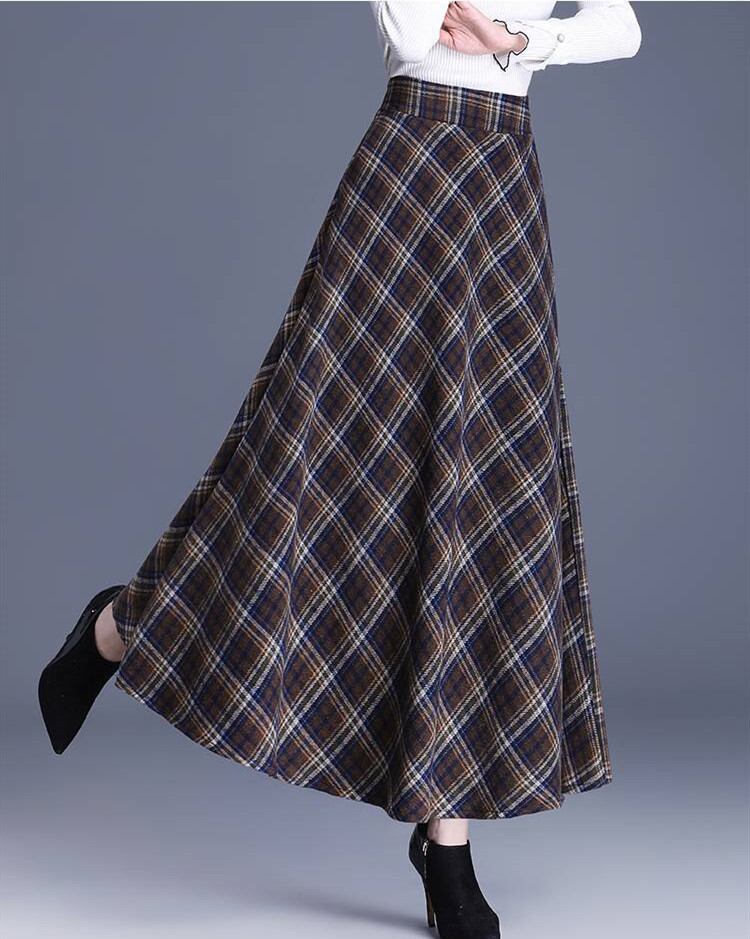 ◎【送料無料】秋冬新作 ボトムス スカート フレアスカート ロング丈スカート チェック柄 きれいめ 大人