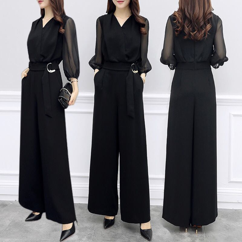 ◎【送料無料】パンツドレス 大きいサイズ パーティードレス 着痩せ スタイル スッキリ 脚長効果 オールインワン 黒
