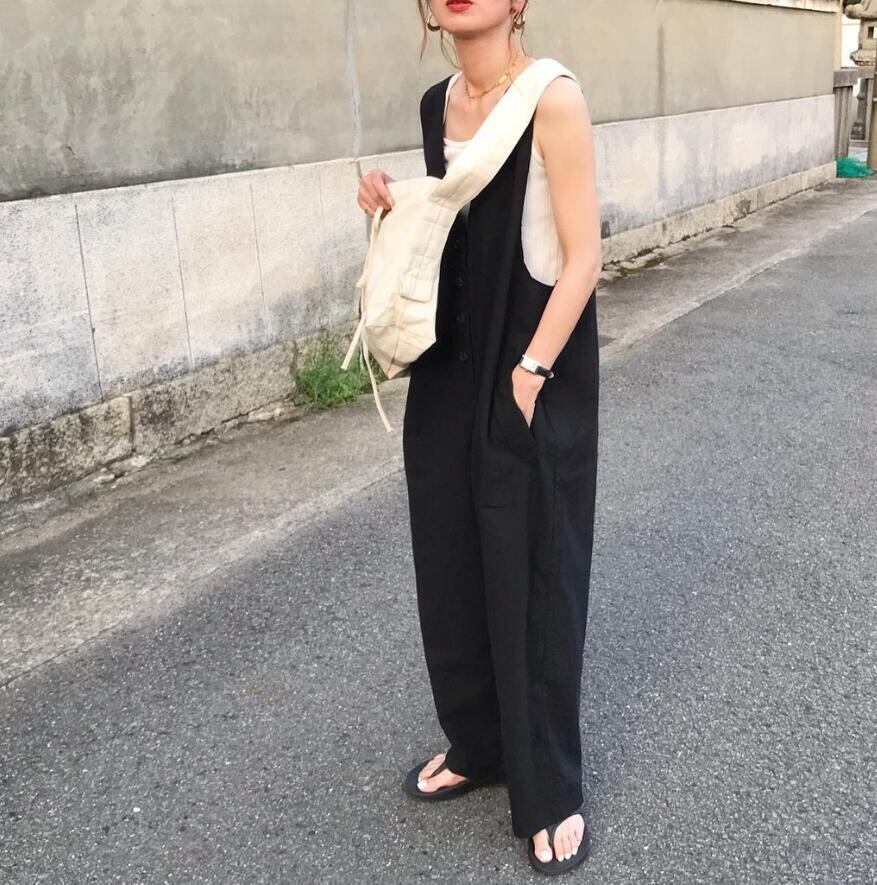 ◎【送料無料】ロンパース オールインワン レディース Vネック ノースリーブ サロペット 体型カバー ゆったり 気質