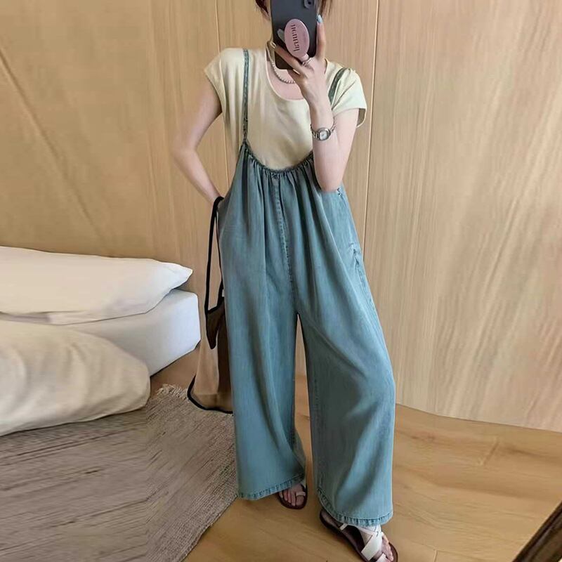 ◎【送料無料】デニムサロペット サロペット オーバーオール カジュアル ポケット レディース